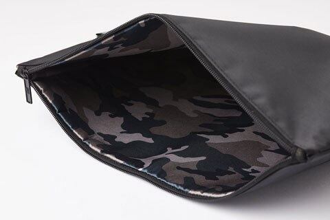 ファスナーポケットの裏地もカモ柄というこだわりのアイテムです。